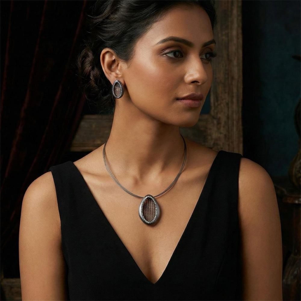 Elevate your elegance with Petal Maze, a beautifully handcrafted pendant inspired by intricate floral geometry. Designed to make a bold yet refined statement, this piece showcases fine filigree art...